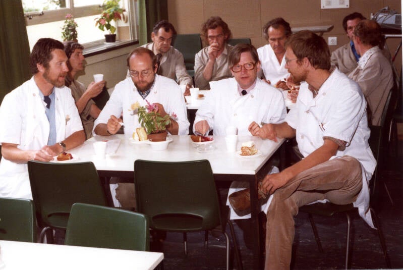 Pieter-Jan Coenraads aan zijn bureau, midden jaren 1980. Hij zou later hoogleraar Dermatoallergologie en Arbeidsdermatologie worden