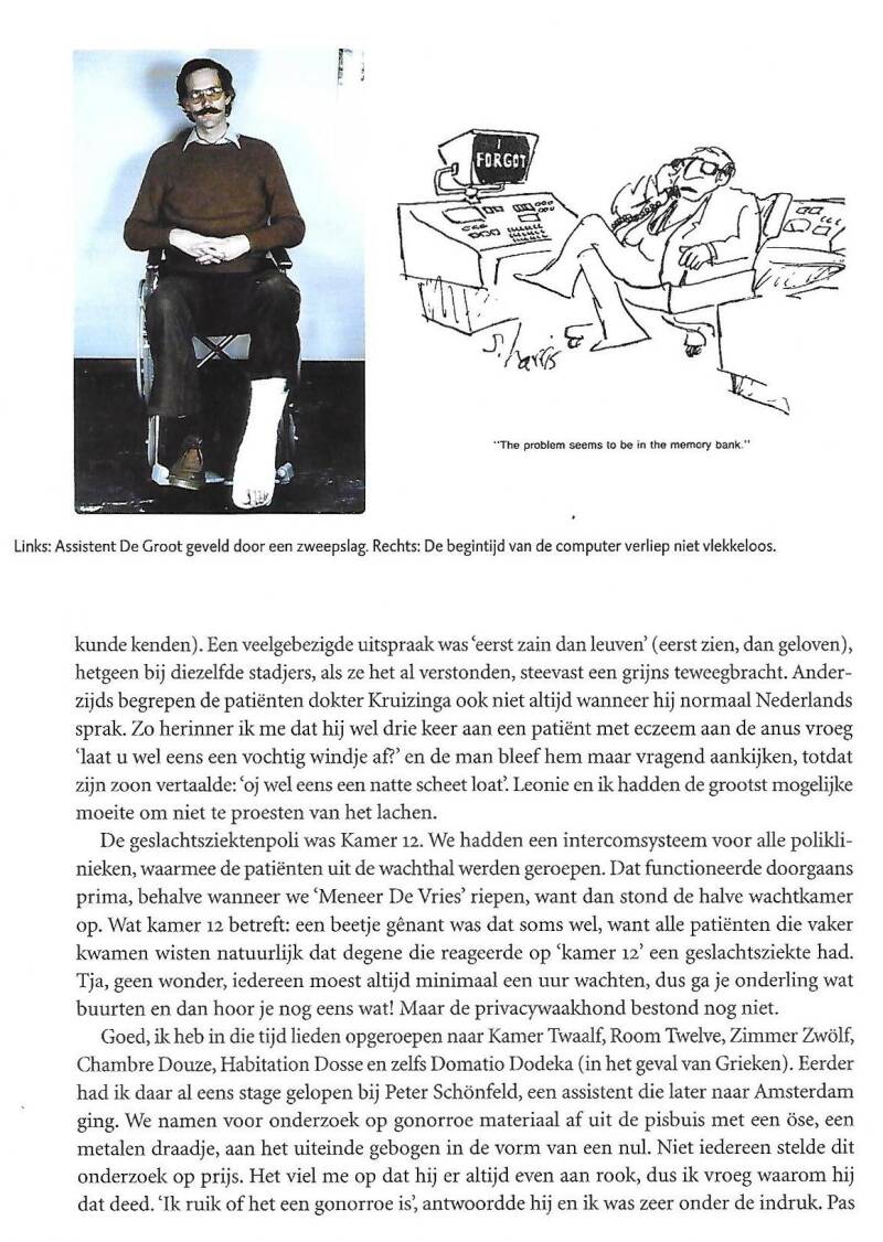 De auteur in 1977, tijdens zijn opleiding tot dermatoloog in Groningen. Aan de reflecties in de brillenglazen en schaduwen op de muur is duidelijk te zien dat de toenmalige fotograaf van de kliniek ofwel onvoldoende verstand had van fotografie, ofwel niet de juiste belichtingsapparatuur had om dergelijke artefacten te voorkomen