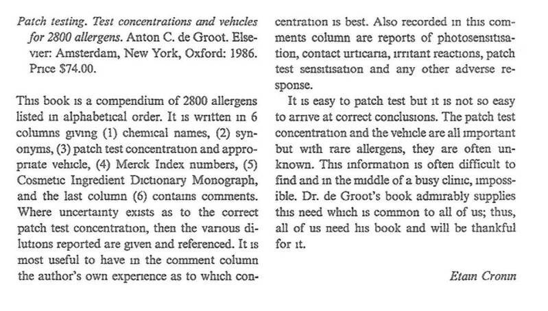 Boekbesprekingen van de eerste editie van Patch testing (selectie)